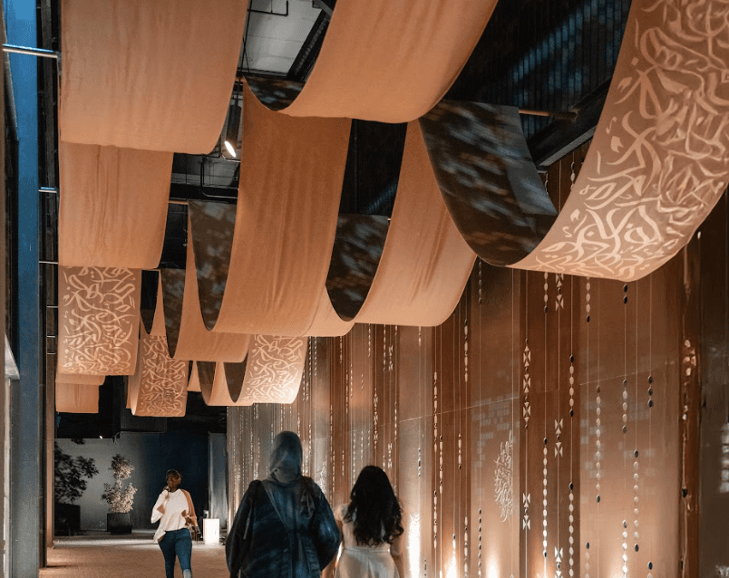 Designed to impress, the tunnel inscribed with Arabic calligraphy introduced the visitors to the space.